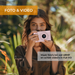 • Compact en altijd klaar voor gebruik Dankzij de ingebouwde 700 mAh oplaadbare batterij en ondersteuning voor MicroSD-kaarten tot 64 GB, kun je overal en altijd fotograferen zonder zorgen.