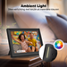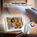De Denver PFF-1080 digitale fotolijst onderscheidt zich door de ingebouwde ambient LED-verlichting, die zorgt voor een zachte, sfeervolle gloed rondom de lijst. Deze verlichting creëert niet alleen een warme sfeer in de ruimte, maar benadrukt ook de kleuren en details van je foto’s, waardoor elke herinnering nog levendiger wordt.